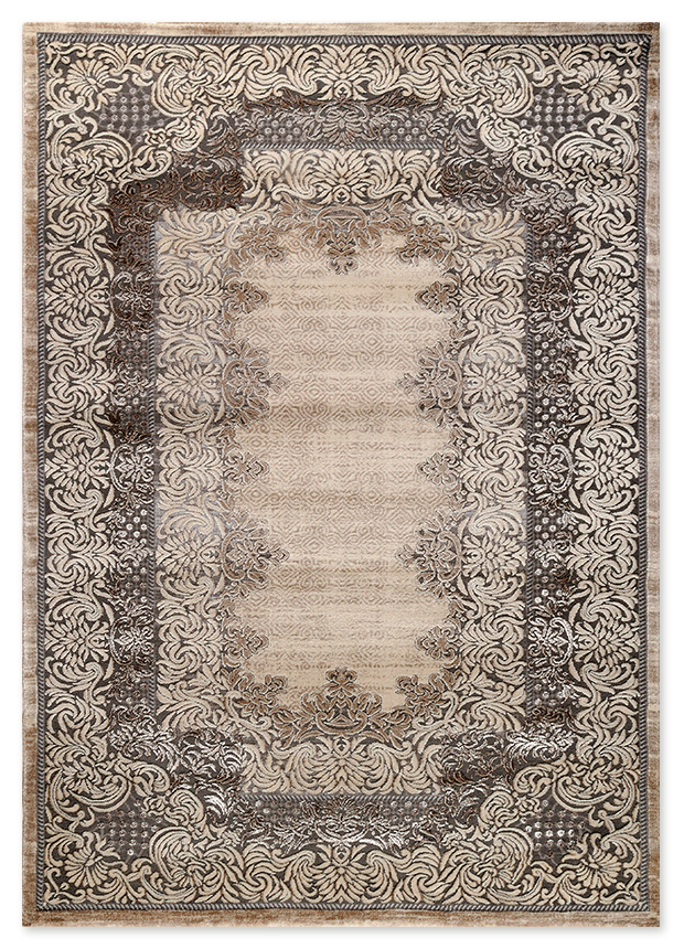 Machine woven classic rug with embossed design. Weaved with highly durable synthetic fibers in low pile. It is really easy cleaned with cold water in combination with a mild detergent.