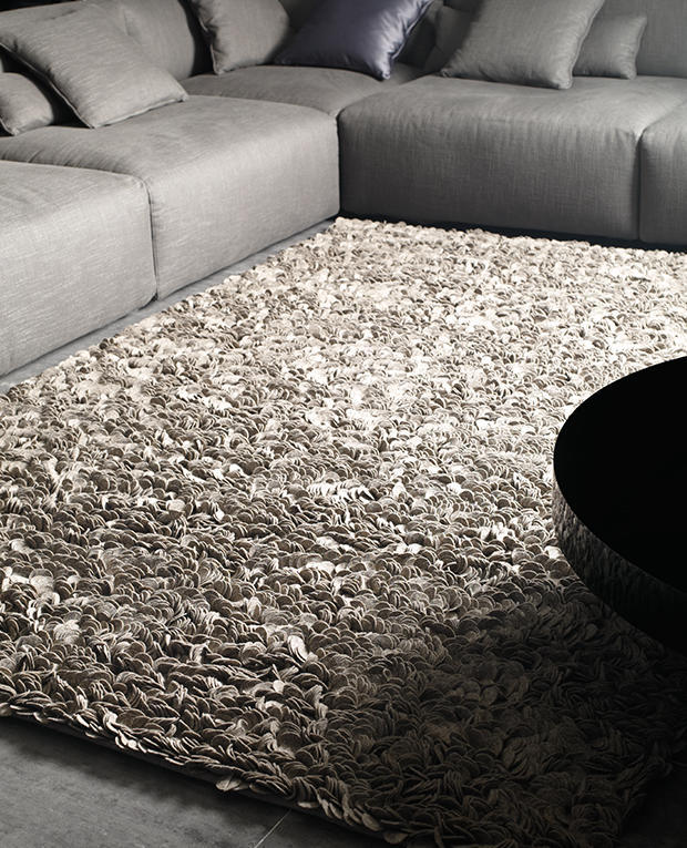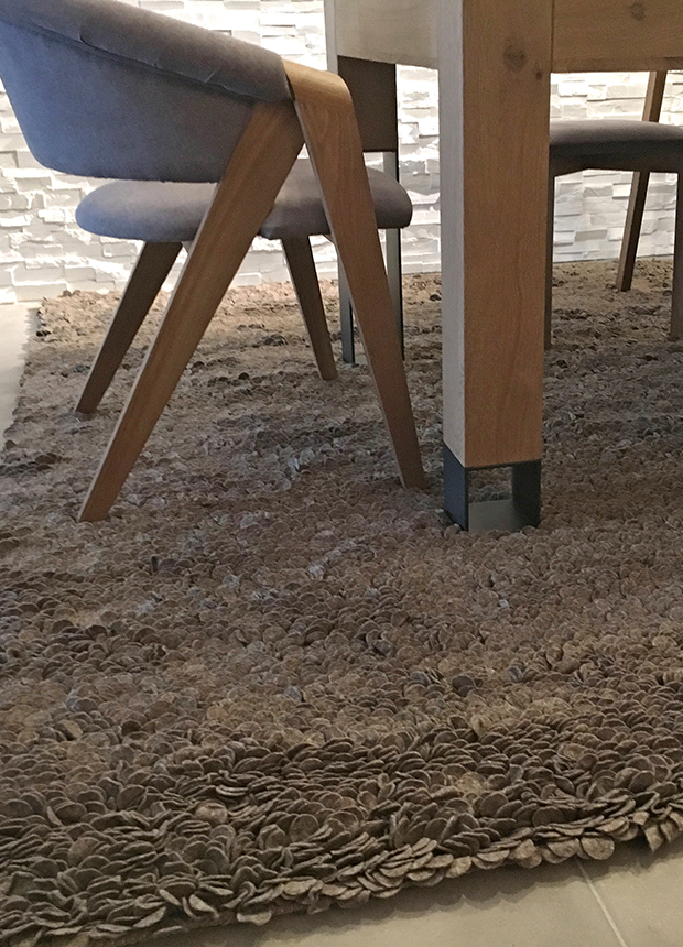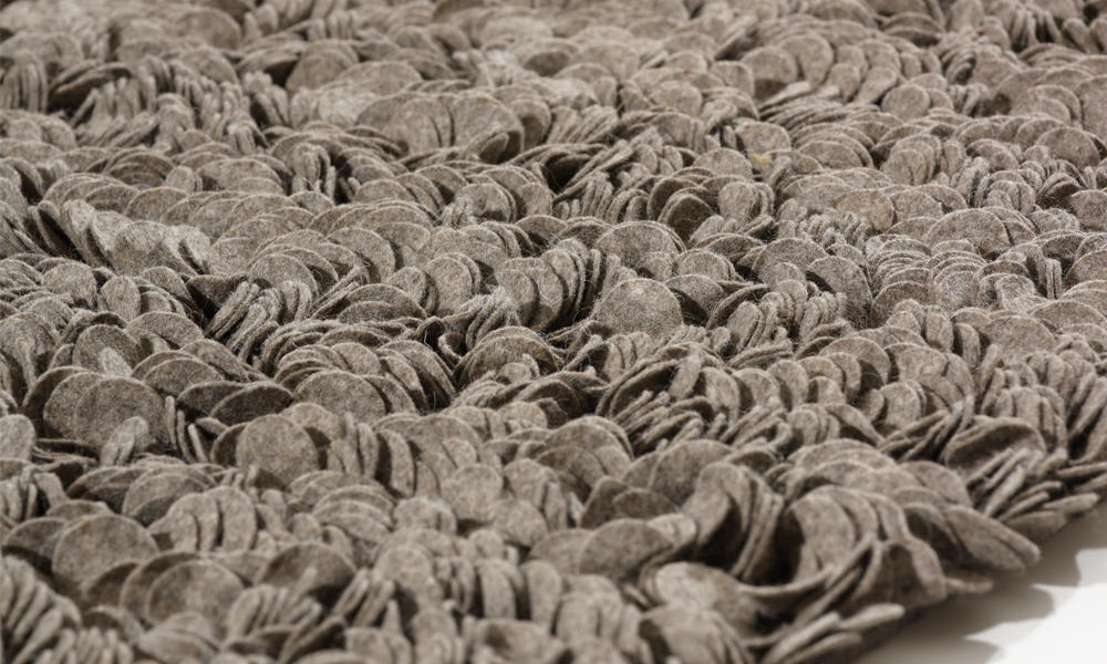 Hand woven rug "Mushrooms" in natural Grey-Brown color, made from 100% wool felt pile.