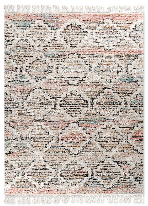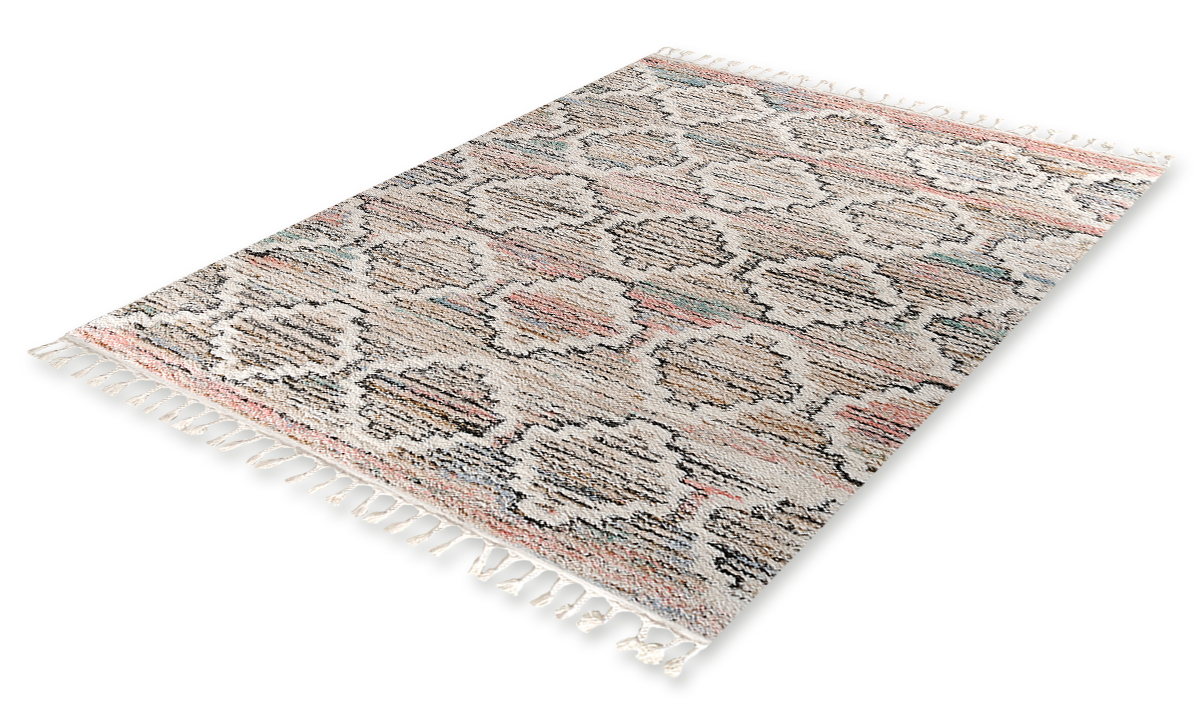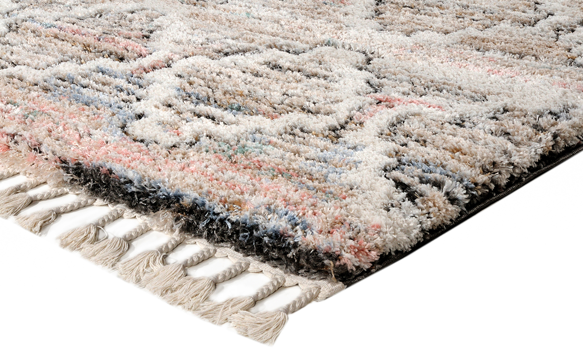 Machine rug with modern design. Weaved with highly durable polyester fibers in rich pile with handmade fringes. It is really easy cleaned with cold water in combination with a mild detergent.